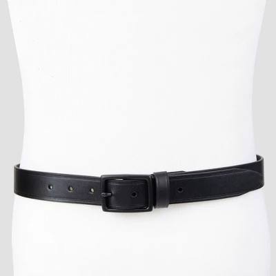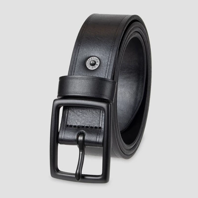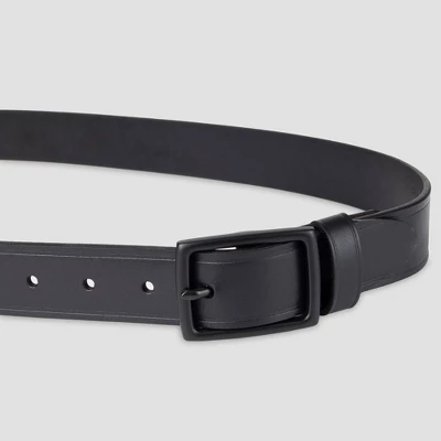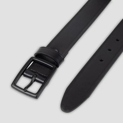 Take your style up a notch with the Men’s Bar Drop Loop Belt from Goodfellow & Co™. In a versatile black shade, this men’s belt is made of soft, supple textured faux leather and features a simple band that helps create a polished look. It’s secured with a complementing rectangle buckle and drop loop, and sports multiple holes for a comfortable and customizable fit. This sleek all-black faux-leather belt can be paired with a casual tee and jeans or with an elegant formal jacket and dress pants to bring another dimension to your look.