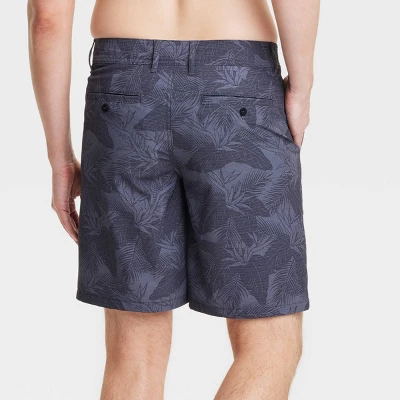 Get ready for the sand, surf and waves in style with these 9-Inch Leaf-Printed Hybrid Swim Shorts from Goodfellow & Co™. These regular-rise swim shorts feature a soft fabric blend with four-way stretch for comfortable wear that moves with you, and a seamless leaf print in dark gray for enhanced style. The belt-loop waistband with a fly button closure gives you a stay-put fit, while the UPF 50+ rated material offers protection from the sun. Best of all, two side and back pockets provide you space to keep your small essentials close at hand.