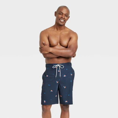 Enjoy the warm weather in fun, comfy style in these 9-Inch Sun-Print Swim Shorts from Goodfellow & Co™. These mid-rise board shorts are adorned with tiny floral and sun prints on a navy blue background, plus they’re made of soft fabric with spandex and an inner mesh liner for cool and stretchy comfort. The adjustable waistband with back elastic and a front drawstring offers you a customizable fit, while the UPF 50+ rated material offers protection from the sun. Best of all, two side pockets and a back pocket provide you space to keep your small essentials close at hand.